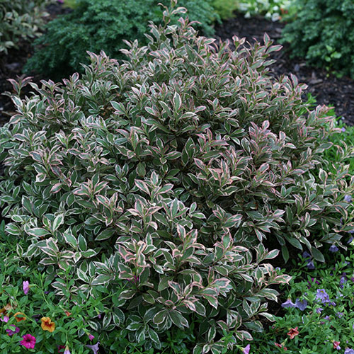 My Monet Purple Effect™ brings new color, more flowers, and better adaptability, while sharing all the charm and beauty of the original My Monet® weigela. Its variegated cream and mint green foliage takes on purple (as opposed to pink) tones, and it is much better able to withstand the rigors of both cold and warmer climates.