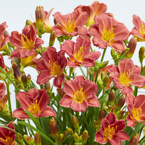 This fantastic daylily series has a fantastic dwarf habit, great colour, and a strong reblooming nature. Stunning red flowers. An offspring of the popular Stella d'Oro, yet even hardier. Blooms early and steadily all season long. Perfect for borders or patio containers.