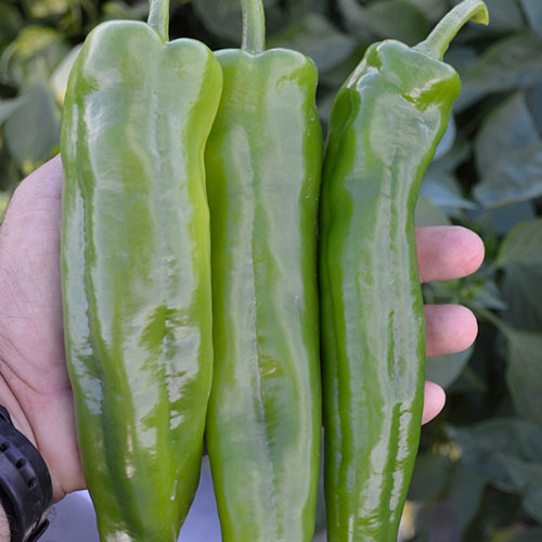 This highly productive anaheim hybrid pepper has excellent disease resistance and vigour in the garden. Large fruit are slightly spicy and begin as green and mature to red.